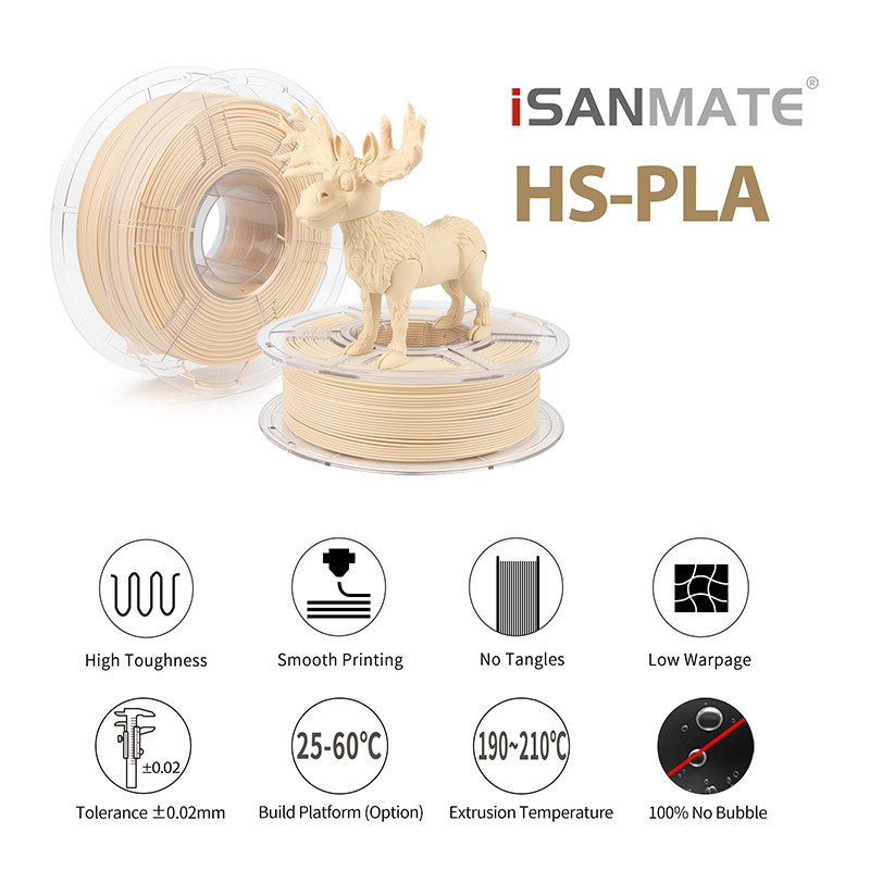 - Filamento iSANMATE PLA High Speed Matte: Acabado mate y alta velocidad.