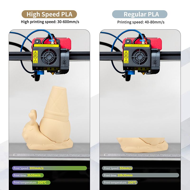 - **Alta velocidad de impresión:** Hasta 600mm/s, optimizando tiempos de producción.