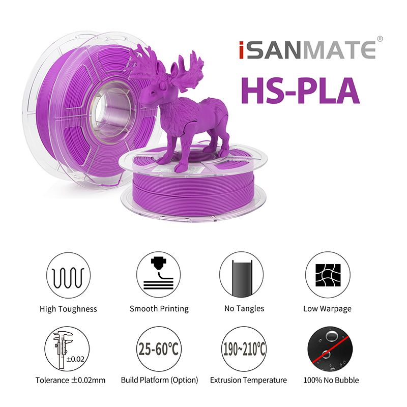 - Filamento iSANMATE PLA High Speed Matte: Acabado mate y alta velocidad.